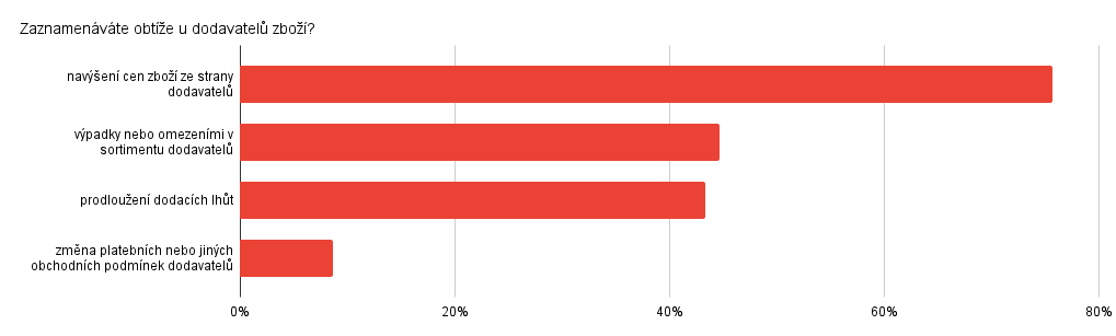 Otázka, která se zaměřila na zásobování, ukazuje, že téměř dvě třetiny obchodníků odhadly přípravu na vánoční sezónu správně a zboží měly dostatek. Třetina respondentů vyprodala už během sezony a necelá čtyři procenta hlásí velké problémy s nedostatkem zboží.