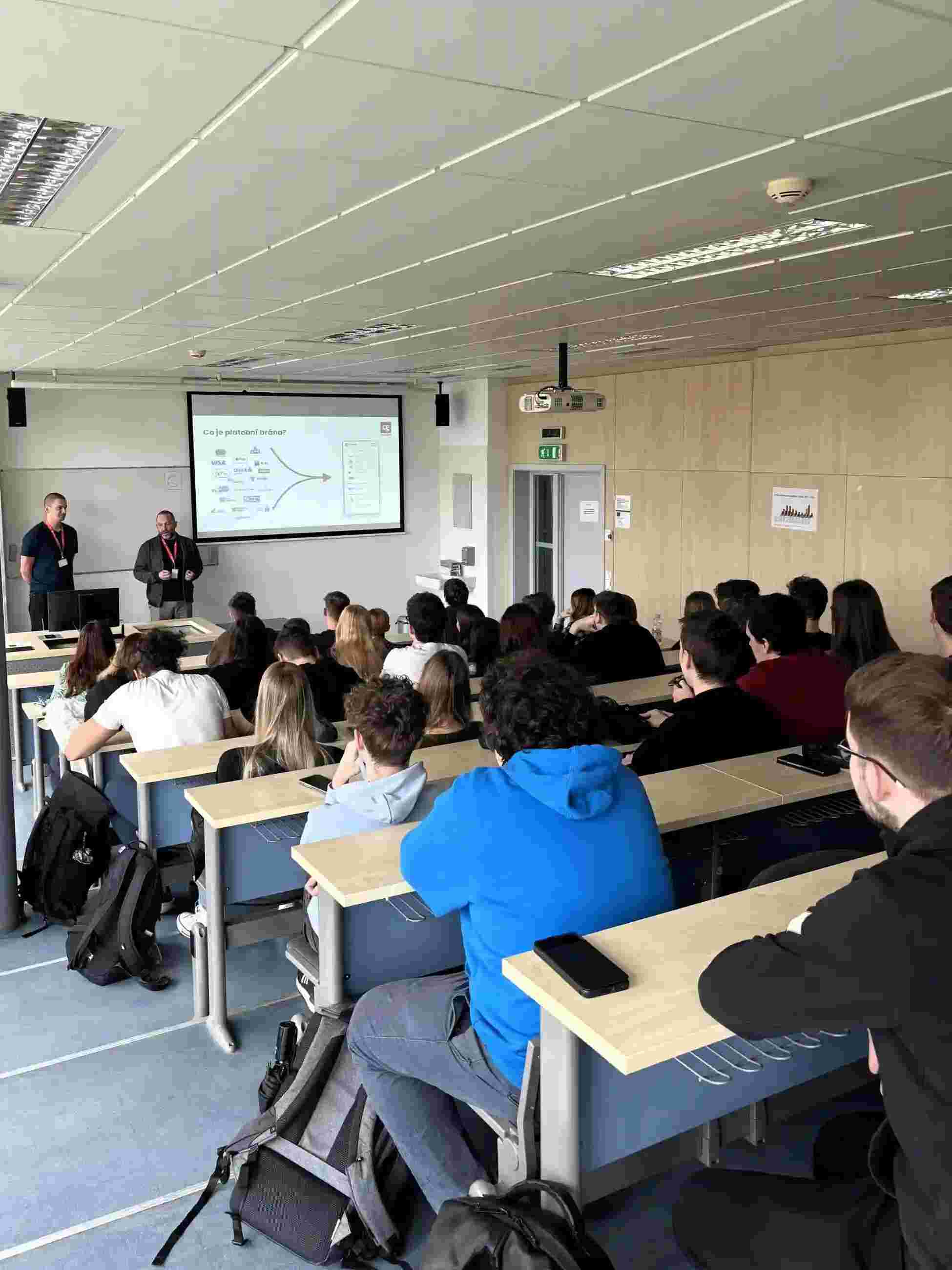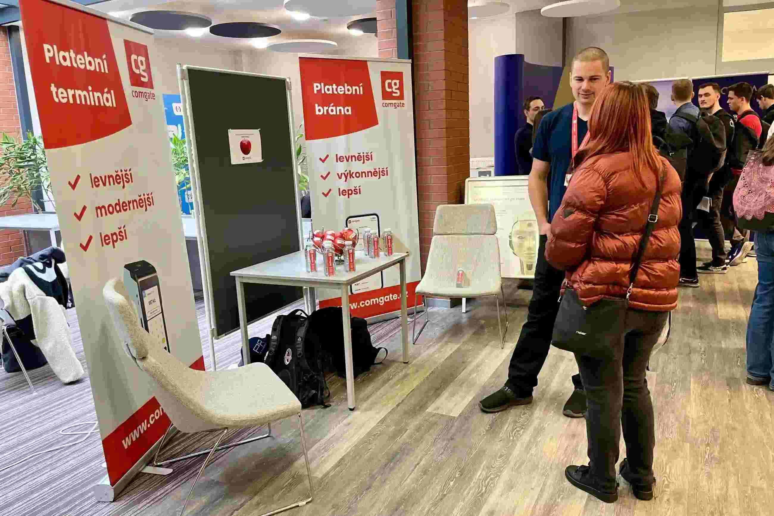 „Množství a zájem studentů, kteří se u nás zastavili, nás příjemně překvapil. Ptali se velmi konkrétně a těšilo nás, že se o práci v Comgate opravdu živě zajímali,“ hodnotí účast na veletrhu vedoucí komunikace a PR Michal Petrák. Ten spolu se zkušeným vývojářem Tomášem Novotným přednášel zaplněnému sálu o bezpečnosti a spolehlivosti, které klienti od platební brány očekávají, a jakým způsobem je u platební brány Comgate zajišťujeme. Také účast a zájem studentů na přednášce byly potěšující. Těšíme se, až se s některými z návštěvníků veletrhu budeme potkávat jako kolegové. V Comgate dáváme pracovní příležitost i studujícím – několik našich vývojářů pracuje při studiu na částečný úvazek.