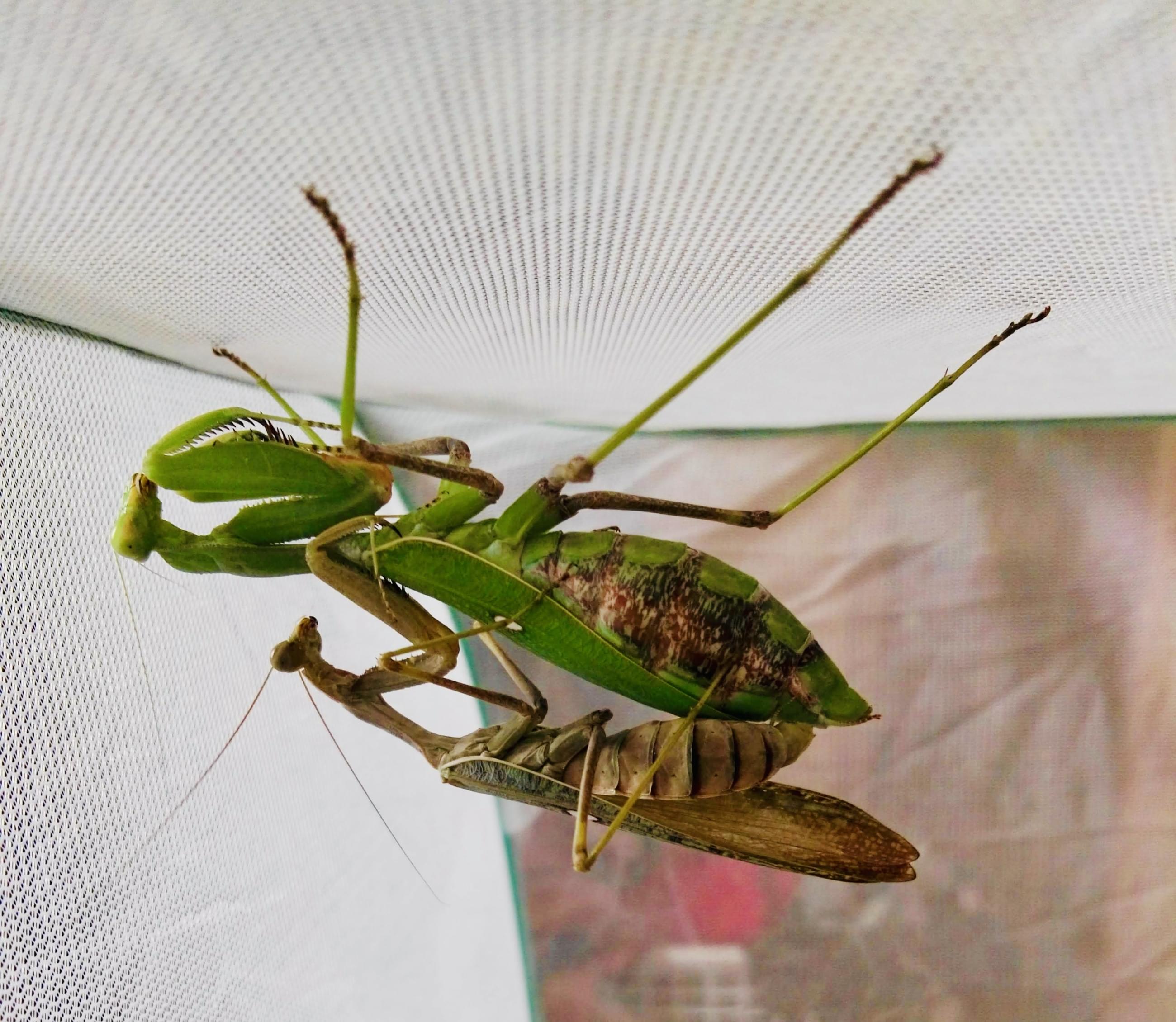 Musíme na to dávat pozor. Kudlanky jsou dravci a loví. Nejen samečky – když budou samice pohromadě, budou se také navzájem lovit. V přírodě to tak funguje proto, aby měla samička potravu, někdy samečkovi ukousne nebo usekne hlavičku proto, aby se s ní nepářil tak dlouho, urychlí kopulaci. Některé druhy se páří třeba až 36 hodin. Při chovu na to dáváme pozor, snažíme se samičku nakrmit, abychom riziko minimalizovali. Ale stává se to. Když se nestihnou spářit, může se stát i to, že přijdete o druh.